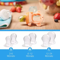 - Alleen het beste voor uw baby: 2 stuks. Fruit Teats Baby met in totaal 6 zachte, niet-giftige & BPA-vrije siliconen opzetstukjes in 3 verschillende, bij de leeftijd passende maten voor baby’s van 3 tot 24 maanden – ideaal voor thuis & onderweg.