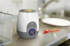 - Stand 3: deze kun je gebruiken als je haast hebt om het flesje warm te krijgen. Het water waarin je de fles verwarmt wordt bij deze stand echt heet, dus pas op met spetters als je het flesje uit de flessenwarmer pakt.