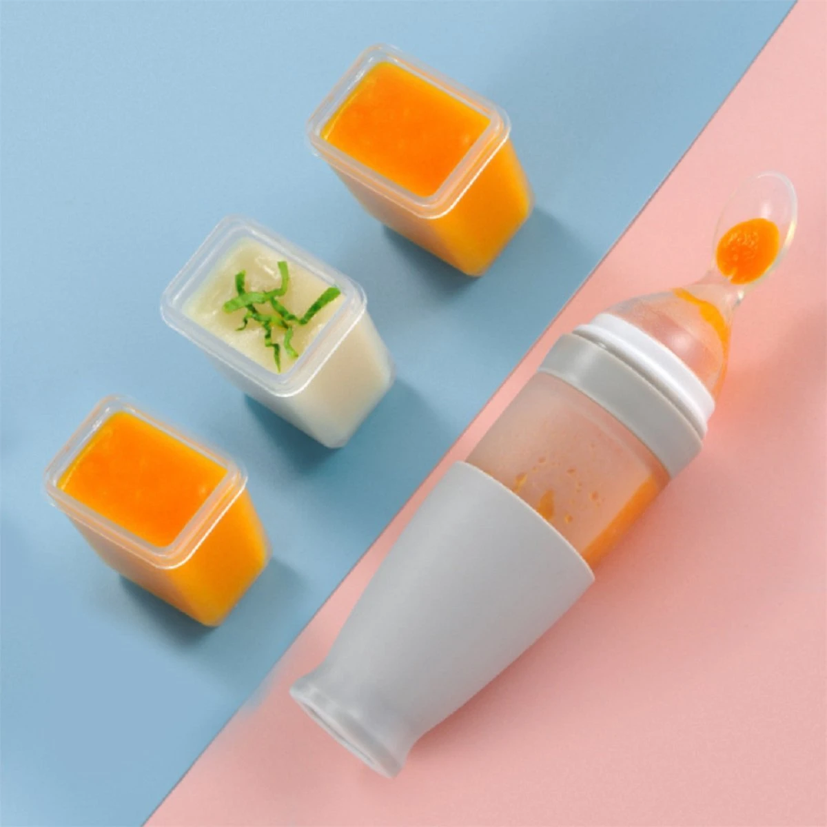 Knijpfles en lepel voor baby’s