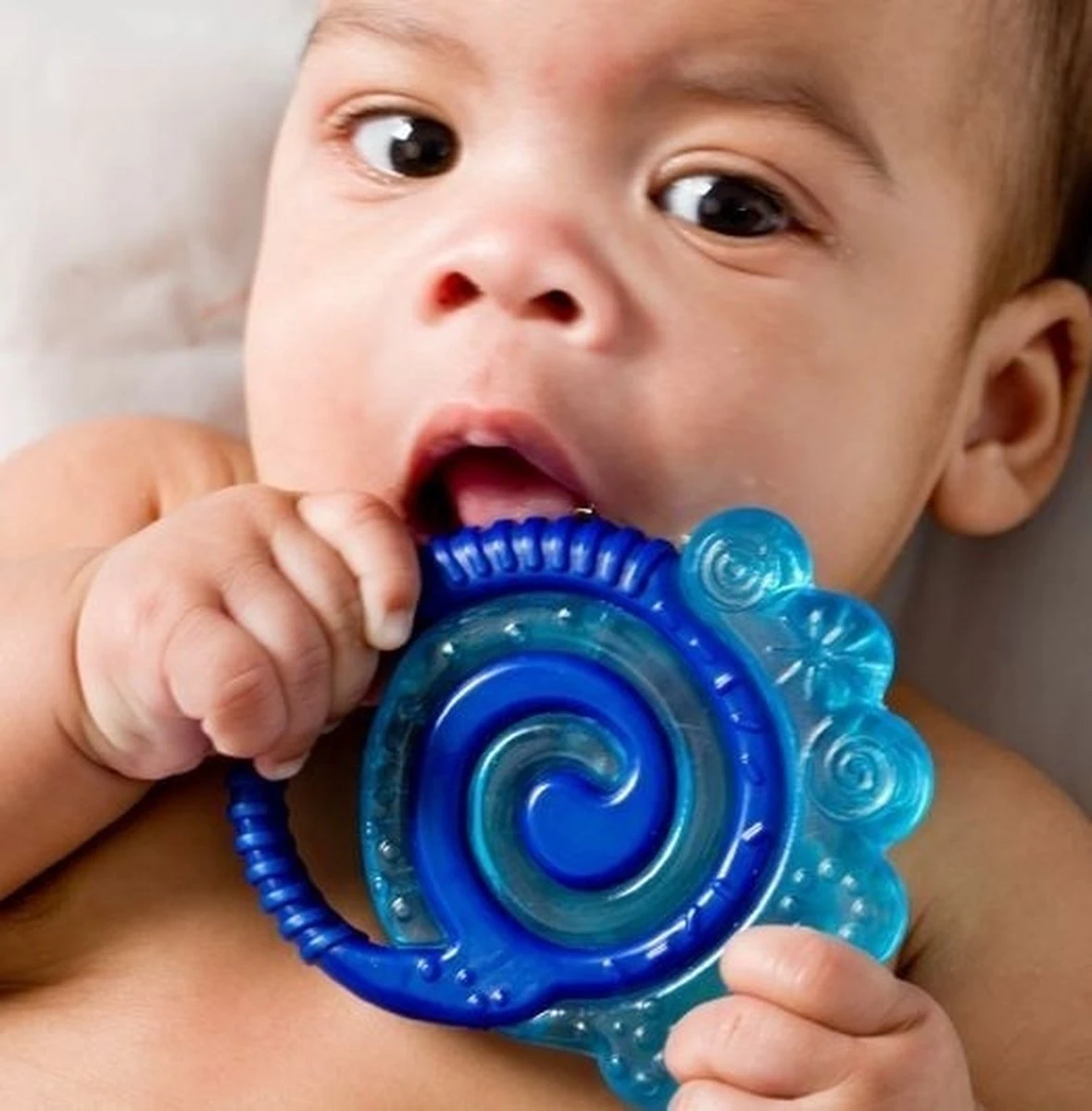 Dit speelgoed kan makkelijk door kinderhandjes vastgepakt worden. Om te koelen: leg de bijtring een half uur in de koelkast, niet in de vriezer. Gevuld met veilig, gesteriliseerd water.
