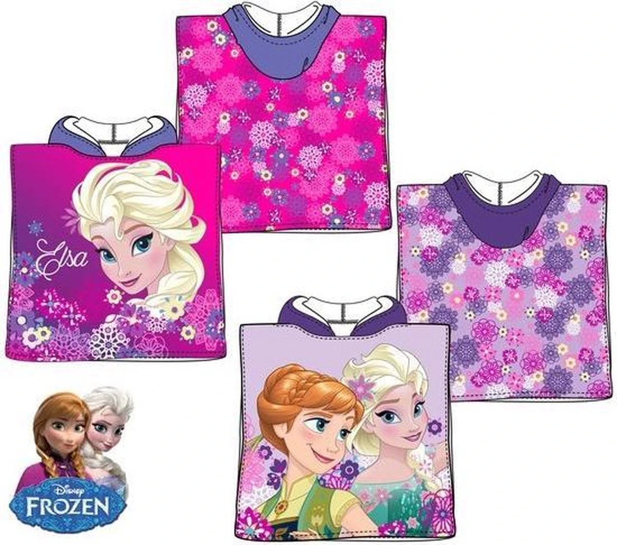 Frozen Bad Poncho met afbeelding van Elsa in de kleur paars.