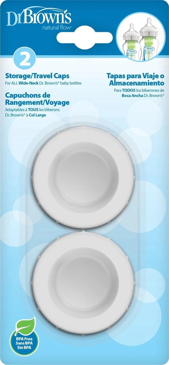Met deze doppen sluit je je Dr. Brown’s-fles lekvrij af. Handig voor onderweg of op vakantie, maar ook ideaal als je voeding in de fles invriest.