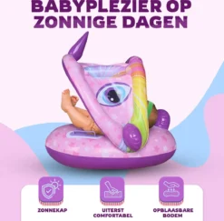 Met het unicorn baby zwembad ben jij direct op de juiste weg! Een kleurrijk en comfortabel kinderzwembad zorgt ervoor dat de allerkleinsten kennis kunnen maken met het water. Omdat wij de veiligheid van jouw kleine kind net zo belangrijk vinden als jou is het zwembad uitgerust met een groot zonnescherm: hierdoor wordt er veel schadelijke uv-straling tegen gehouden en kan jouw kindje veilig spelen in het fantastische unicorn kinderzwembad!
