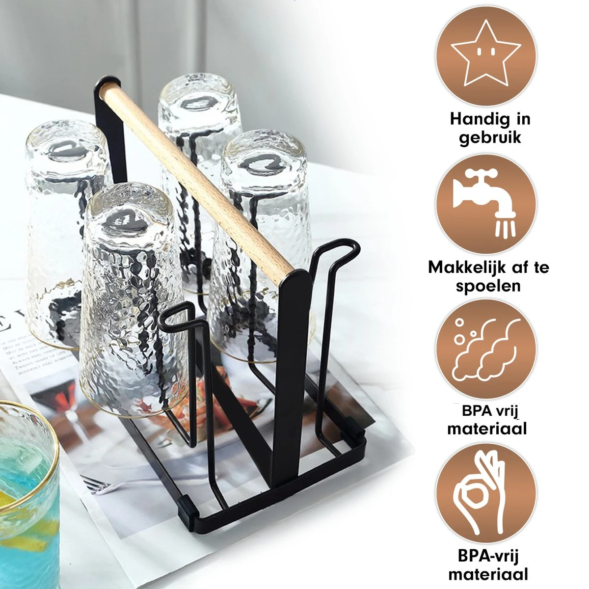 Flessenrek – Droogrek Babyfles – Flessen Rek Baby – Flessendroogrek – Afdruiprek – Afwasrek – Flessenrekje – Lekbak – Égouttoir – Zwart Met Houten Handvat – Vetalo