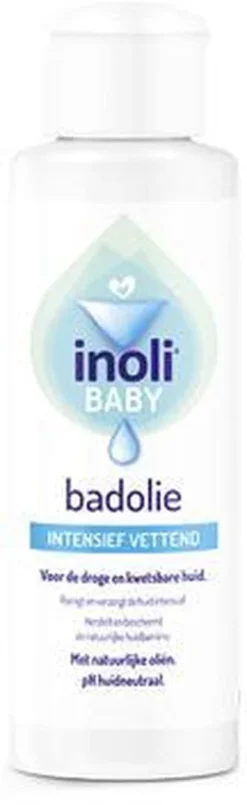 Inoli Baby Badolie Intensief Vettend is speciaal ontwikkeld voor de droge en kwetsbare huid. De huid van je baby kan zeer droog zijn, met ruwe of schilferige plekjes. Inoli intensief vettende Baby Badolie bevat extra vettende Abrikozenpitolie, die de tere en droge babyhuid reinigt en verzorgt. Het voedt de huid intensief en maakt deze weer zacht en soepel. Daarnaast versterkt het de natuurlijke huidbarrière.
