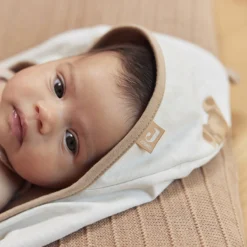 Na het badderen of zwemmen is deze badcape ideaal. Je wikkelt je baby direct warm in zodra hij uit het water komt. Met de capuchon bedek je het hoofd waardoor het daar ook geen warmte verliest. Comfortabel voor je baby! De badcape is gemaakt van 100% badstof katoen. De buitenkant is gemaakt van 100% Jersey. De zachte stof is mild voor de tere babyhuid en neemt goed vocht op waardoor het afdrogen in een mum van tijd klaar is. Na gebruik hang je de cape gemakkelijk op aan het lusje. De badcape heeft een afmeting van 75x75cm. Kleur de badcape heeft een super schattig printje van Teddy beertje. Liever zonder printje? Jollein verkoopt ook badcapejes zonder print!
