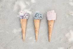 Verkrijgbaar in groen en roze. Er zijn ook hydrofiele doeken met andere prints verkrijgbaar.