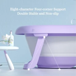 - De gespreide beenstructuur is schuin naar buiten ongeveer 30° voor stabiele ondersteuning. De vier hoeken zijn voorzien van anti-slip zachte rubberen pads, die stevig dicht bij de grond liggen en niet gemakkelijk om te rollen zijn in geval van water. De bodem van het bad is geplaveid met een zacht rubberen antislippad, zodat het PP van de baby niet naar beneden glijdt, waardoor de baby een veilige badomgeving krijgt.