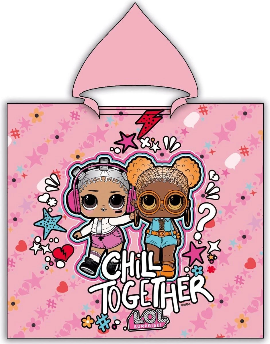 L.O.L. Surprise! Poncho. Deze mooie poncho is perfect om mee te nemen naar het strand of het zwembad. Chill together, dat kan nu ook beschermd tegen de zon onder deze mooie poncho. Ook een leuk cadeau!