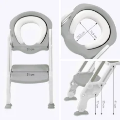 Help je kind op een leuke en veilige manier de eerste stappen te zetten naar zelfstandigheid en zindelijkheid met de LifeGoods WC verkleiner! Gelukkig weet je met onze grijze toiletverkleiner zeker dat jouw kleintje een toiletbril heeft die altijd goed past. Dankzij de zachte vulling en anti-slip voetjes verzeker je dat jouw kindje altijd prettig en veilig naar het toilet kan. Het volledig opvouwbare design maakt ‘m gemakkelijk op te bergen en te vervoeren.