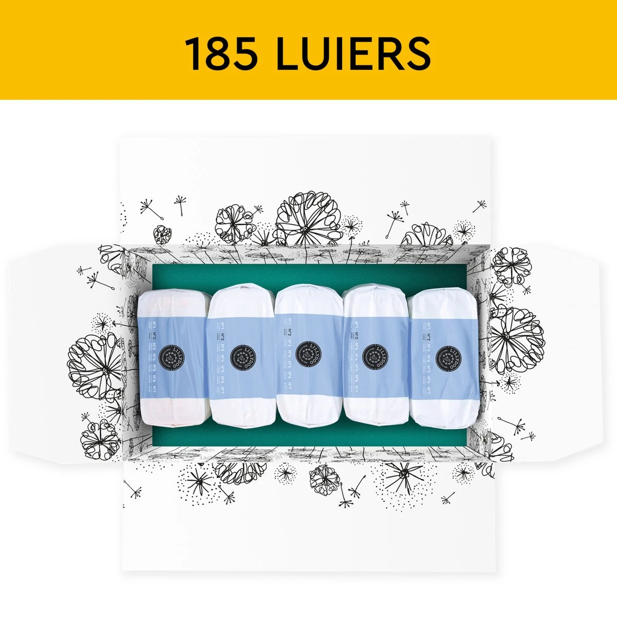 LILLYDOO Huidvriendelijke Luiers – Maat 2 (4-8 Kg) – 185 Stuks – Maandbox