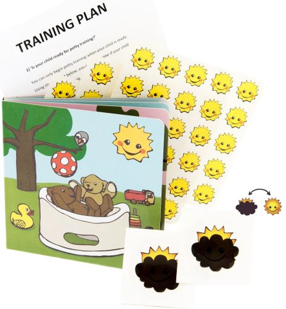 Deze zindelijkheidstraining bestaat uit 2 Magic Stickers die elk 3-6 maanden meegaan, 75 beloningsstickers, een beloningsboekje om de stickers in te plakken en een eenvoudig stappenplan inclusief checklist waarmee men kan bepalen wanneer je het beste met de training kunt beginnen.