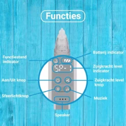 Heeft jouw kindje vaak last van een verstopte of snotterige neus? De Neusreiniger zorgt in een paar seconden voor een snotvrije neus. De elektrische neusreiniger heeft 3 verschillende zuigsterktes. Zo kan je kind er rustig aan wennen.Voordelen van de Neusreiniger:
