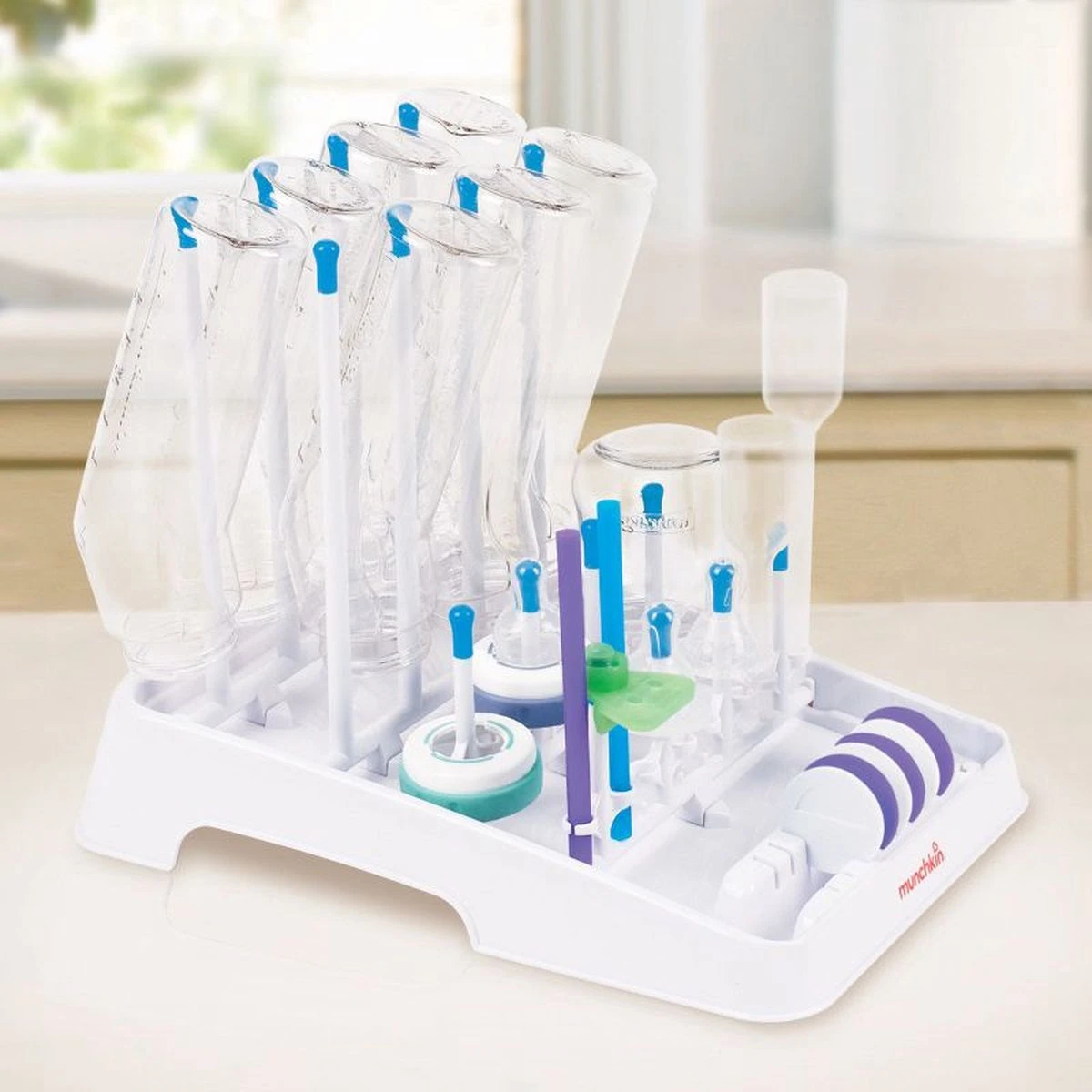 Munchkin is een bedrijf dat zich richt op de productie van babyproducten. Hierdoor hebben zij veel ervaring opgedaan in deze sector. Ze weten precies wat ze doen en staan garant voor goede kwaliteit. Dit geldt uiteraard ook voor dit droogrek. De gebruikte materialen zijn zorgvuldig geselecteerd op kwaliteit en het productieproces is intensief overzien. Op deze manier kan dit mooie en handige flessenrek lang mee. Bij normaal gebruik uiteraard. Op deze manier kun je voor lange tijd plezier hebben van dit exemplaar. De eenvoud waarmee je nu flesjes, bekers en spenen kan drogen is uitmuntend. Het droogrek is dus handig, ziet er hip uit en is ook nog eens van zeer goede kwaliteit.