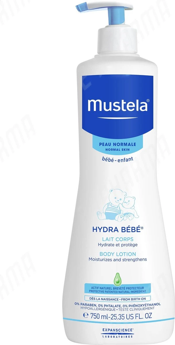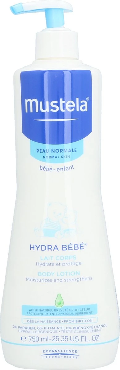 Mustela Hydra Bébé Lichaamsmelk is een hydraterende bodymilk voor de tere baby- en kinderhuid met 0% parabenen, 0% phtalaten en 0% phenoxyethanol.