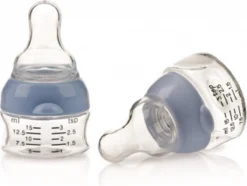 Het miniflesje is een ideaal hulpmiddel voor het toedienen van vloeibare medicatie en vitamines aan een baby. De onaangename geurtjes van medicatie en vitamines zullen je baby niet meer hinderen met dit drinkflesje. De doseringen kunnen zowel in aantal theelepels als milliliters worden gemeten. Het miniflesje is, door de inkepingen, makkelijk vast te houden met kinderhandjes. Het biedt een nette en betrouwbare manier om je baby te verzorgen.