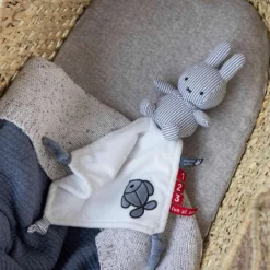 Dit is een heerlijk zacht knuffeldoekje van nijntje. Door de knoopjes in de hoeken is het knuffeldoekje gemakkelijk beet te pakken. Ideaal speelgoed voor in de box. Ook leuk om te geven als kraamcadeautje. Vanaf de geboorte. De nijntje fun at Sea collectie in rib stof is gemaakt van zachte materialen. De uitgebreide lijn bestaat o.a. uit knuffels in verschillende maten, een muziekdoosje, een ringrammelaar, een muziekmobiel, een trilfiguur en een knuffeldoekje. De nijntje fun at sea collectie is leuk als decoratie voor de babykamer maar uiteraard ook heerlijk om mee te knuffelen en te spelen!
