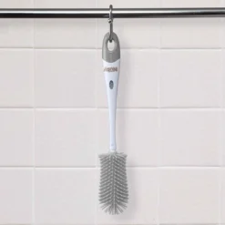 Een baby opvoeden kan al eens een rommeltje worden. De silicone flessenborstel met houder is klaar om je leven net een tikkeltje makkelijker te maken. De silicone borstelharen maken grondig schoon en vermijden dat er krassen gemaakt worden. Het zijn deze kleine dingen die het verschil maken wanneer het op schoonmaken aankomt!