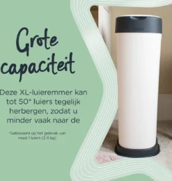 - Grote capaciteit: deze luieremmer is geschikt voor maximaal 50* luiers tegelijk, wat betekent dat u minder vaak naar de vuilnisbak buiten hoeft te gaan en elke navulling biedt voldoende antibacteriële folie om tot wel 1 maand luiers te verpakken*