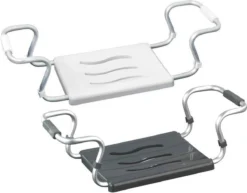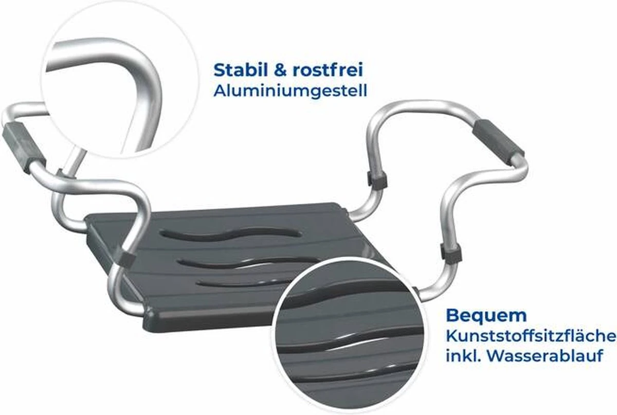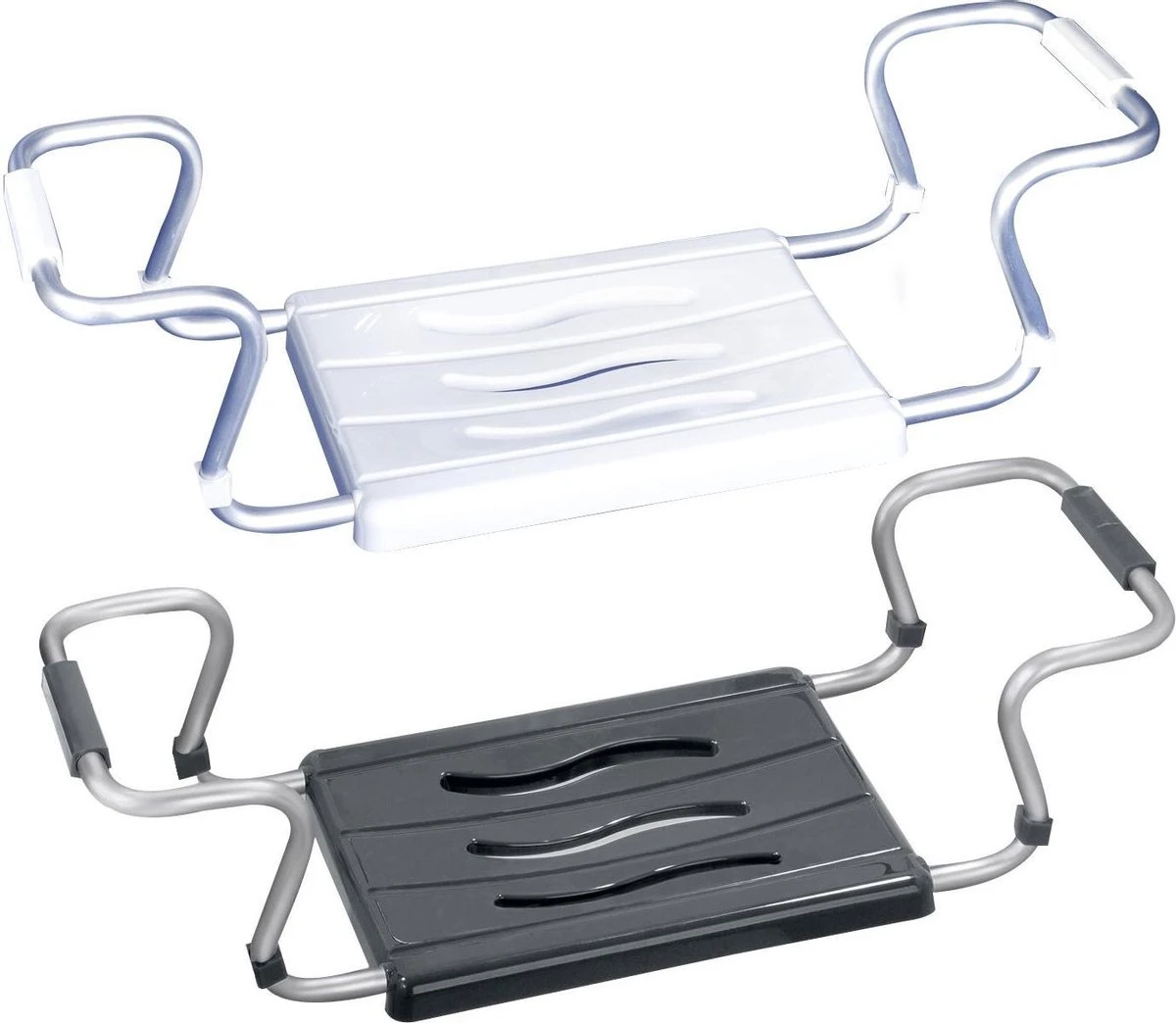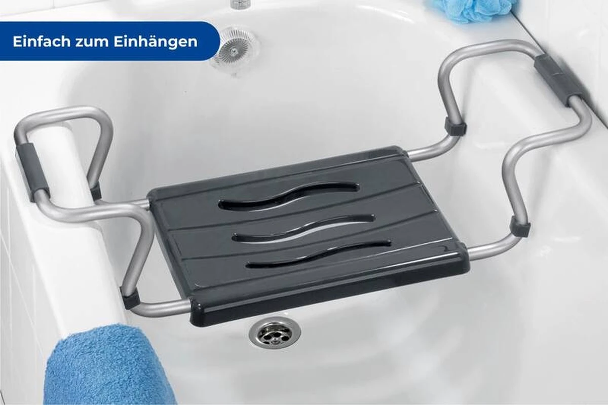 Het Wenko badzitje hangt eenvoudig aan de rand van de badkuip en heeft een draagvermogen tot 150kg, door de aanpasbare breedte past het zitje op alle gangbare baden.